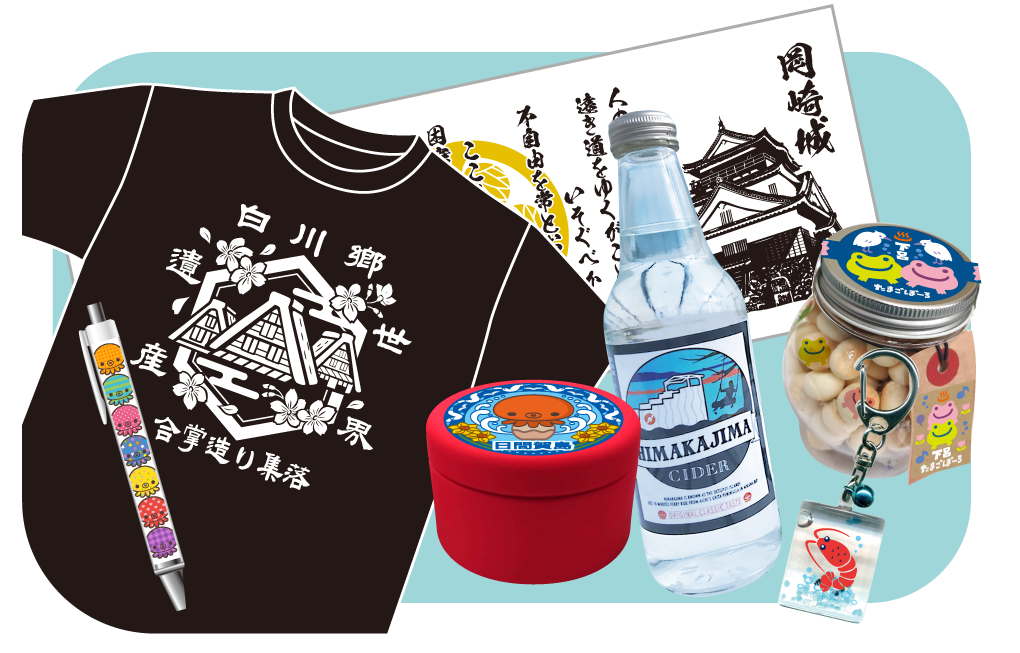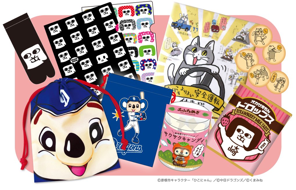 アニメや漫画、スポーツ関係のライセンスグッズ、ご当地キャラクターグッズの企画製造を行っています。特に営業所のある中部地区には力を入れており、お店と一体となって商品づくりを通して地域活性化に貢献しています。